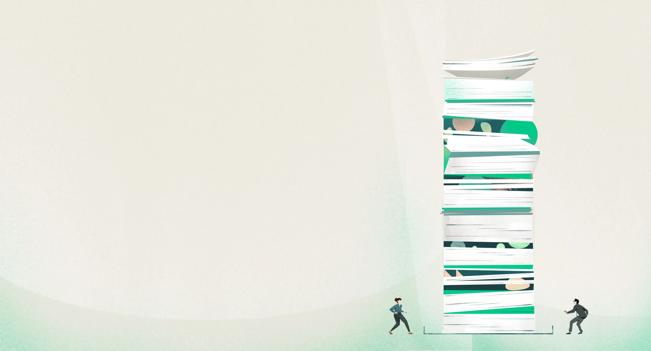 A magnifying glass with an abstract, layered design inside, featuring green, cream, and orange shapes on a light gray background—perfect for highlighting a docusign alternative.